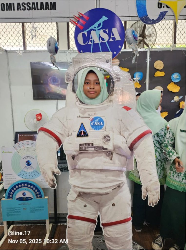 Acara ini menampilkan berbagai stand dari unit sekolah, MGMP, Lab dan juga CASA. Di stand CASA terdapat berbagai karya fotografi, kalender 100 tahun dan juga terdapat photobooth astronot yang menjadi ikonnya. Para santri yang mendatangi booth banyak bertanya mengenai karya-karya foto yang ditampilkan, dan juga bermain dengan kalender 100 tahun untuk mengecek hari ulang tahun mereka. Banyak juga yang tertarik untuk berfoto di photobooth astronot karena unik. Semoga dengan hadirnya CASA di acara MTs Science Fair 2025 dapat menambah semangat para santri dalam mengkaji ayat-ayat langit.