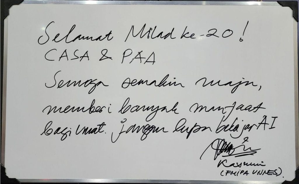 - Kasmui, M.Si. (3 Mei 2025). Selamat milad ke-20! CASA & PAA. Semoga semakin maju, memberi banyak manfaat bagi umat. Jangan lupa belajar AI.