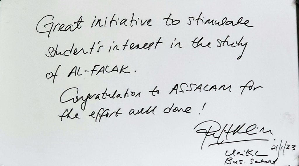 - Dr. Abdul Razaq Abdul Hadi. (21 Januari 2023). Great initiative to stimulate students interest in the study of Al-Falak. Congratulation to Assalam for the effort. Well done!