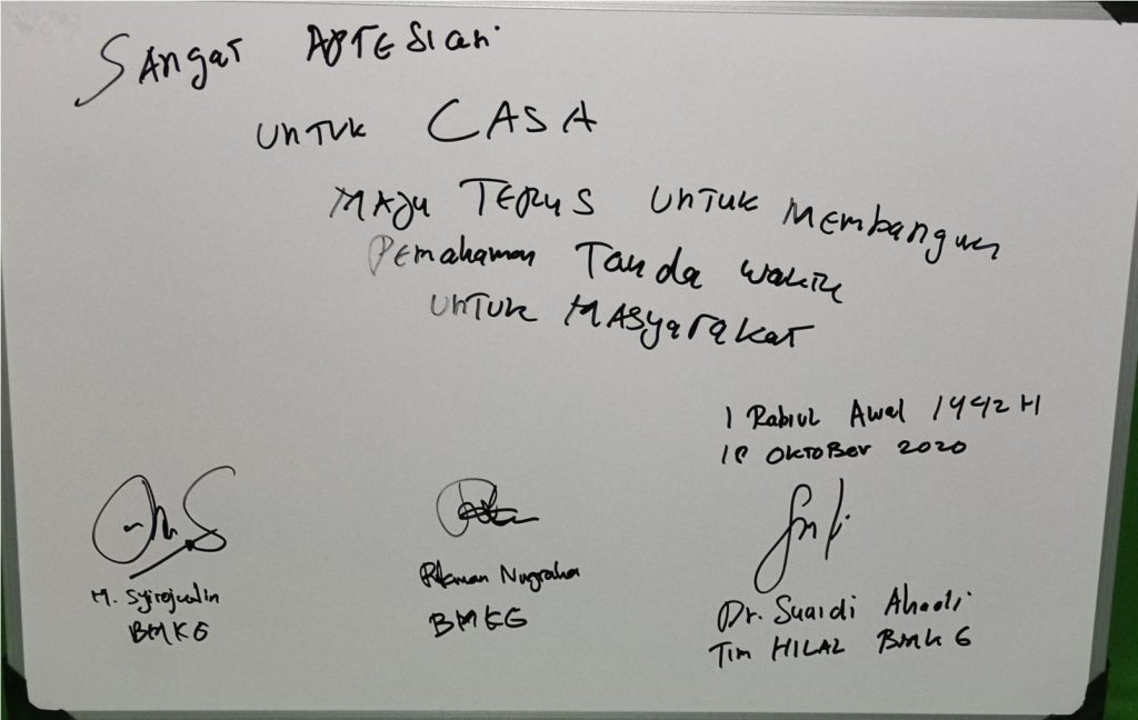 - Suaidi Ahadi. (18 Oktober 2020). Sangat apresiasi untuk CASA. Maju terus untuk membangun pemahaman tanda waktu untuk masyarakat.