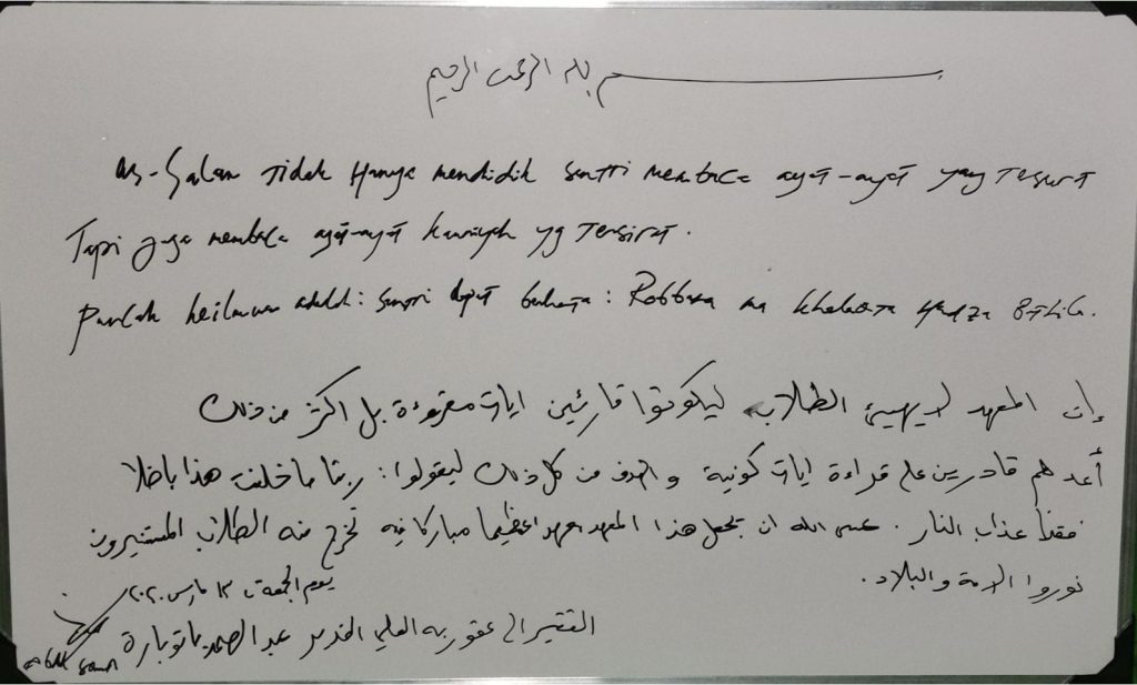 - Ustadz Abdul Shomad Batubara. (13 Maret 2020). As-Salaam tidak hanya mendidik santri membaca ayat-ayat yang tersurat, tapi juga membaca ayat-ayat kauniyah yang tersirat. Puncak keilmuan adalah santri dapat berbahasa: “Robbana ma khalaqta hadza batila”.